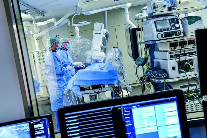 Das Behandlungsspektrum reicht von Medikamenten, die die Gefäßsklerose verlangsamen oder das Blut fließfähiger machen, über minimal-invasive Eingriffe wie die Stentimplantation bis hin zu operativen Bypassverfahren. „Dank moderner Therapien können wir heute vielen Patienten ein längeres und besseres Leben ermöglichen“, erklärt Dr. Börgel. Sämtliche Eingriffe bis hin zur katheterbasierten Wiedereröffnung von bereits chronisch verschlossenen Herzkranzgefäßen und Hochrisikoeingriffen mit Unterstützung einer Mikro-Herzpumpe zur Vermeidung von Bypassoperationen werden in der St. Barbara-Klinik vorgehalten.
