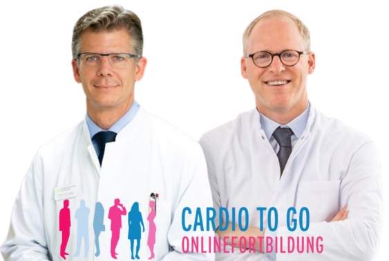 Eingeführt wurde CARDIO TO GO bereits im Sommer 2023 und ist streng genommen eine Errungenschaft der Corona-Zeit. „Ursprünglich suchte ich nach einer digitalen Variante für die klinikinterne regelmäßige Fortbildung in Zeiten, in denen Präsenzversammlungen nicht möglich waren“, berichtet Dr. Jan Börgel. Bei der Recherche, wie man ein solches Format aufstellen könnte, sei er dann auf die ehrenamtliche Initiative MEDIZIN TO GO gestoßen, eine Plattform mit unterschiedlichen Curricula – von Anästhesie über Psychiatrie bis Unfallchirurgie. „Nach einem ersten Kennenlernen wurde ich gefragt, ob ich den Fachbereich Kardiologie aufbauen möchte. Als kompetenten Partner und Co-Moderator konnte ich meinen Freund Prof. Dr. Hannes Reuter aus Köln gewinnen und dann starteten wir“. Auch die St. Barbara-Klinik hat dieses Projekt von Anfang an tatkräftig unterstützt.