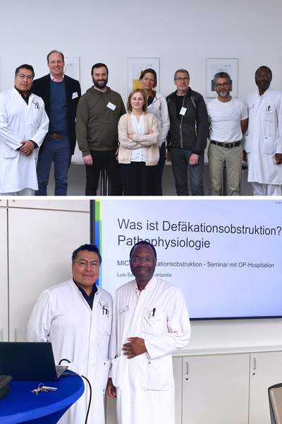 Die Klinik ist durch die Deutsche Gesellschaft für Allgemein- und Visceralchirurgie als Kompetenzzentrum für minimal-invasive Chirurgie zertifiziert. Unter der Leitung von Chefarzt Dr. Ayeni Gilbert Lawong und dem leitenden Oberarzt Luis Sangueza Quintanilla aus der Klinik für Allgemein- und Viszeralchirurgie erhielten die Teilnehmenden einen umfassenden Einblick in die komplexe Thematik der Defäkationsobstruktion.