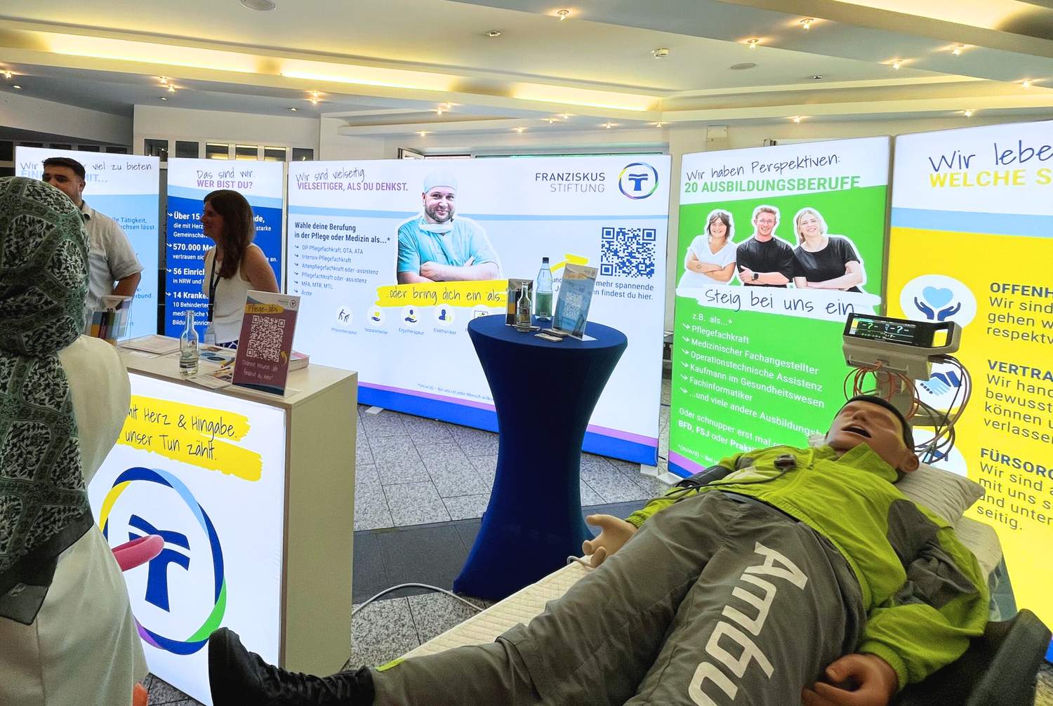 Allerdings gibt es nicht nur spannende Gespräche zu führen und Informationen einzuholen. Auch das eine oder andere Mitmach-Angebot wartet auf die Besucher des Karrierestands: Erste-Hilfe-Mini-Workshops, kleine Gesundheitschecks oder auch Einblicke in den Praxisalltag werden von unserem Team für euch vorbereitet.