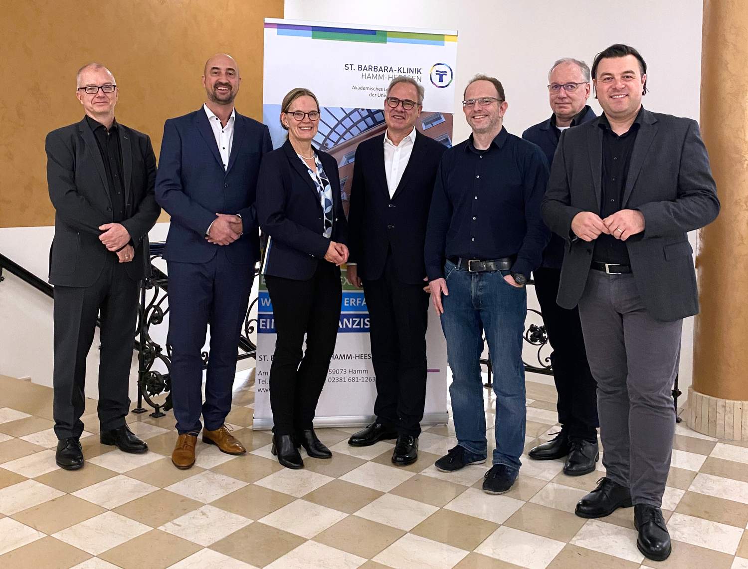 Im Mittelpunkt stand das Thema „Sektorübergreifende Versorgung", das nach einhelliger Meinung der Teilnehmenden die Zukunft der Onkologie prägen wird. „Krebserkrankungen nehmen zu, aber es gibt heute deutlich mehr Behandlungsmöglichkeiten", betonte Peter Potysch, Geschäftsführer der St. Barbara-Klinik, zum Auftakt. Neben Kliniken sind zunehmend auch spezialisierte Praxen und Hausärzte in die Versorgung eingebunden. „Um die Orientierung im komplexen System zu erleichtern, wollten wir alle Sektoren zusammenbringen", so Potysch weiter. Ein wichtiger Treiber für die verstärkte Zusammenarbeit ist die Krankenhausreform NRW, die seit dem 1. April gilt und eine stärkere Spezialisierung vorsieht. Für Patientinnen und Patienten bedeutet das unter anderem: Autologe Stammzelltransplantationen werden künftig in Hamm ausschließlich an der St. Barbara-Klinik durchgeführt.